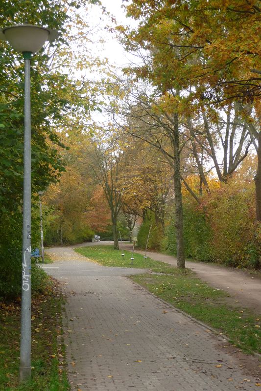 Das Foto zeigt die alte Wegeführung des Friedenswegs im Bereich Bezirkssportanlage -