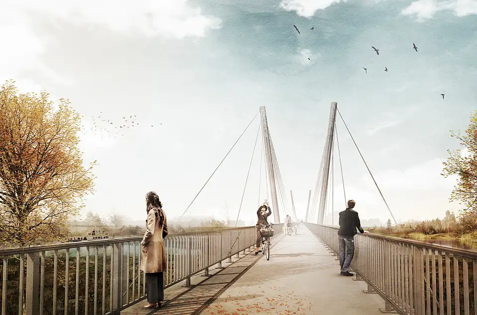 Beispielhafte Visualisierung des Wesersprung Ost – Korbinselbrücke © ASV/pb+/BPR/Westphal Architekten