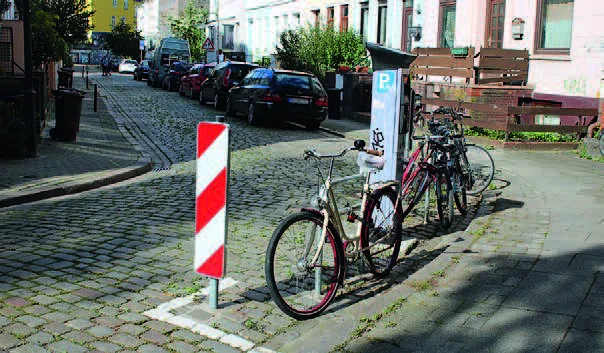 Fahrradbügel in Längsaufstellung am Fahrbahnrand im SUNRISE-Quartier
