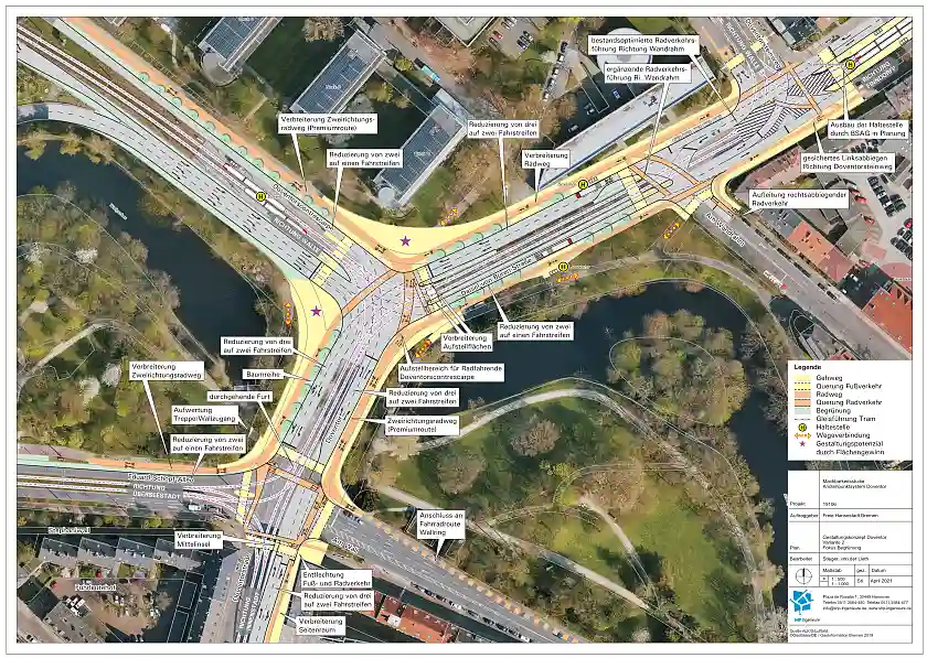 Aktuell liegen erste Variantenentwürfe für eine Umgestaltung des Doppelknotens Doventor vor. Diese wurden bereits im begleitenden Arbeitskreis vorgestellt und diskutiert. Neben den fachlichen Belangen haben sich auch die Bürgerinnen und Bürger mit ihren Hinweisen ud Erfahrungen im Rahmen einer Onlinebeteiligung in die Planung eingebracht.