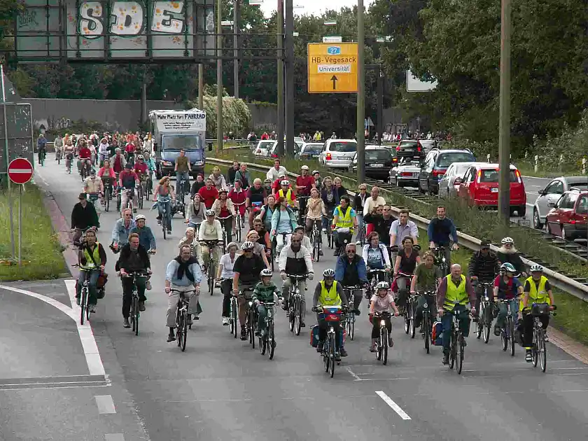 Riesenradtouren mit mehreren hundert Teilnehmern ins Grüne oder auf den fürs Auto reservierten Hochstraßen und Autobahnzubringern - am autofreien Tag des Jahres - erfreuen sich ebenfalls großer Beliebtheit und zeigen die Popularität des Fahrrads in Bremen.