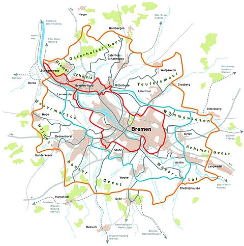 Als Gemeinschaftsprojekt von 23 niedersächsischen Städten und Gemeinden, sechs Landkreisen und der Freien Hansestadt Bremen ist der Grüne Ring Region Bremen ein länderübergreifendes Angebot für Ausflügler.