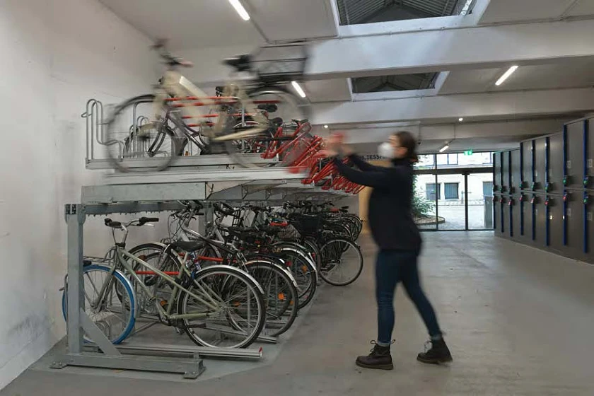 In den Zentren der Stadt sowie an den Haltestellen und Bahnhöfen des Öffentlichen Personennahverkehrs (ÖPNV) wurden rund 15.000 öffentliche Fahrradstellplätze erhoben. Im Fahrradparkhaus am Hauptbahnhof befinden sich 1.600 Fahrradstellplätze für Dauer- und Tagesparker:innen, das als überwachte Anlage mit kontrolliertem Zugang hohe Sicherheitsstandards aufweist. Im Rahmen des Bike+Ride-Konzepts werden an weiteren Bahnhöfen Abstellmöglichkeiten für Fahrräder aufgewertet und neue geschaffen.